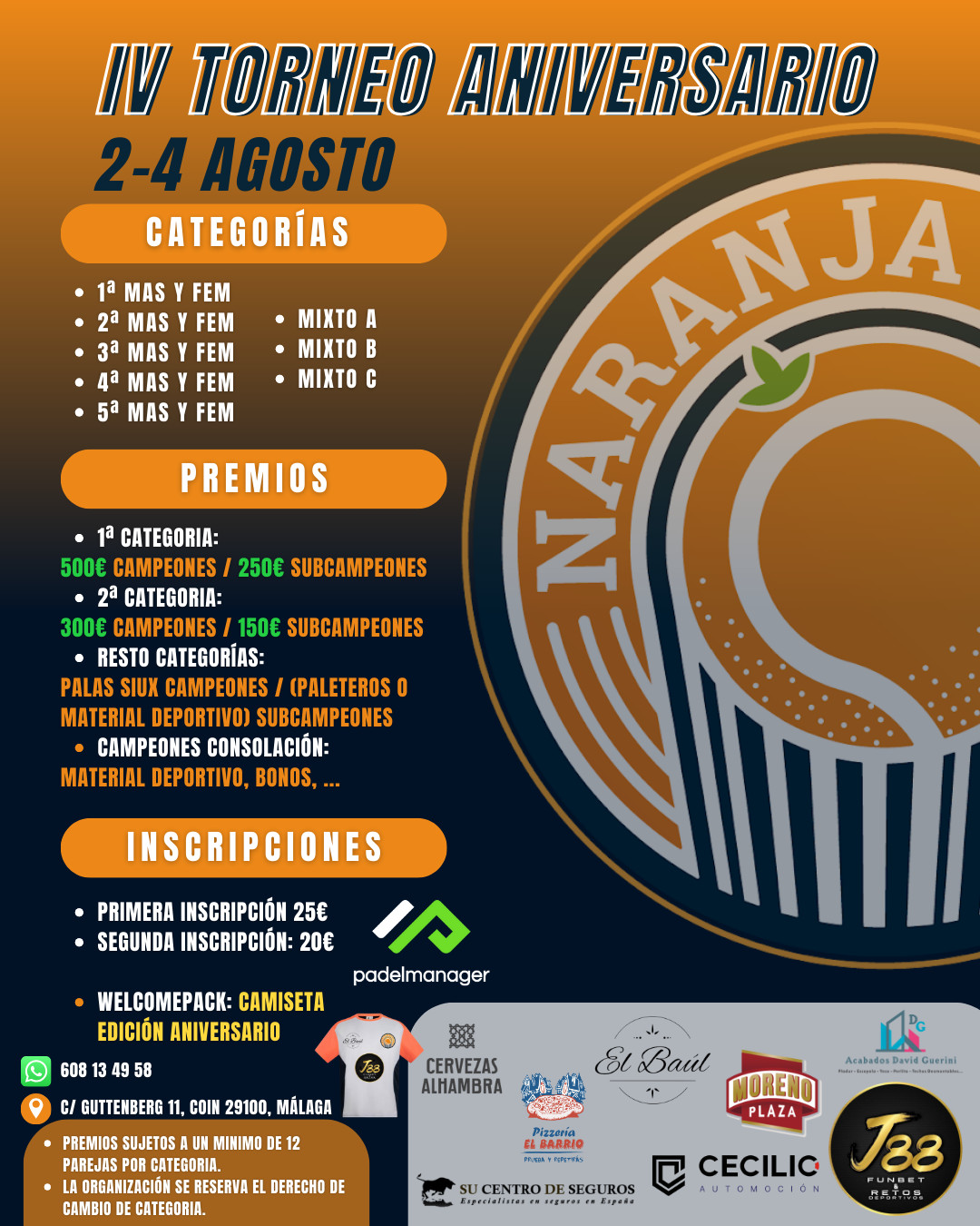 IV TORNEO ANIVERSARIO NARANJA PADEL